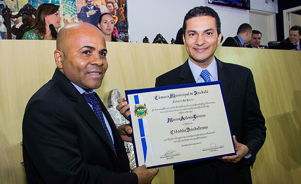 O advogado e presidente nacional do PRB, Marcos Pereira, recebeu na noite de ontem (26), na Câmara de Taubaté, interior de São Paulo, o Título de Cidadão Taubateano. A outorga foi proposta pelo vereador republicano Nunes Coelho em reconhecimento à liderança política exercida por Pereira.