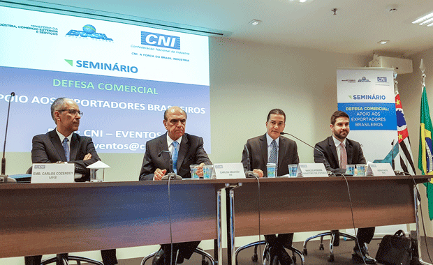 Em discurso na abertura do Seminário de Defesa Comercial, promovido pelo MDIC em conjunto com a Confederação Nacional da Indústria (CNI), o ministro Marcos Pereira afirmou que além de facilitar o comércio e ampliar a rede de acordos comerciais, o governo tem atuado para eliminar ou reduzir barreiras às exportações brasileiras.